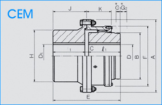 허용토오크(kgf ・ m) | 최대회전수(rpm) | Bore Dia(D) | Bore Dia(DE) | Dimensions (mm) | 중량(kgf) |